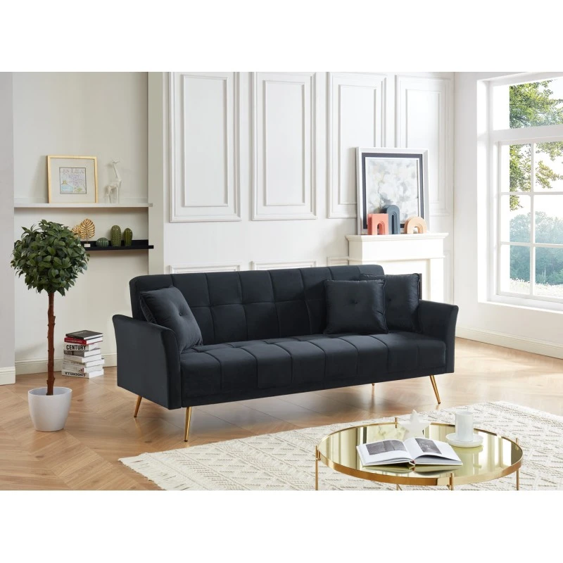 Le canapé chic et tendance AROMA habillera avec élégance votre salon. Vous souhaitez optimiser l’espace de votre intérieur ? Alors craquez pour le canapé droit AROMA qui vous permettra d’accueillir 3 convives. Ses détails capitonnés, ses pieds dorés et son revêtement en velours en feront la pièce phare de votre maison !