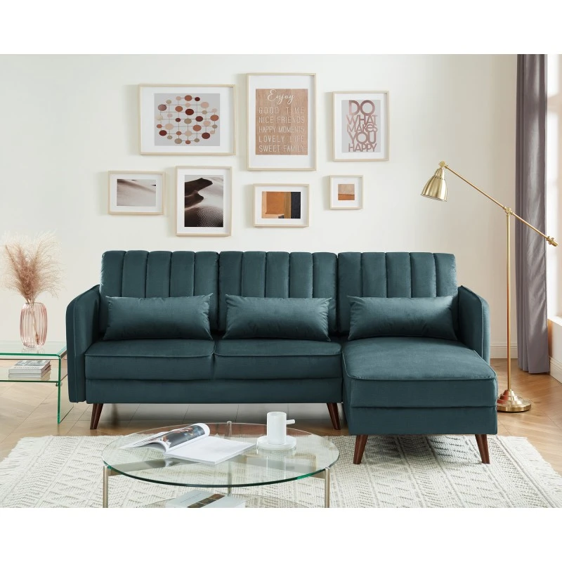 Canapé D’angle IDAHO Tissu Bleu Vert Fixe