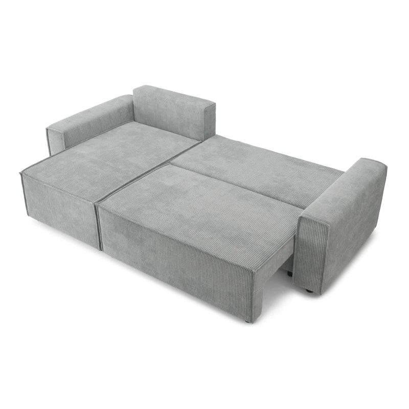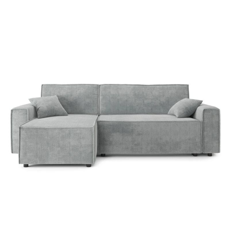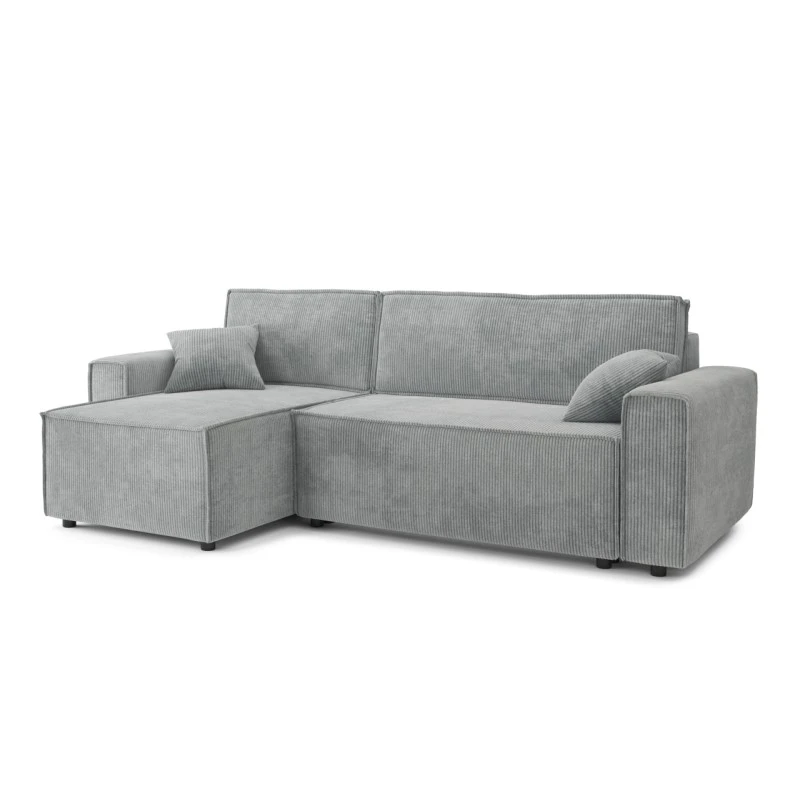 Canapé D’angle MIRA Convertible Et Réversible Velours Côtelé Gris Clair