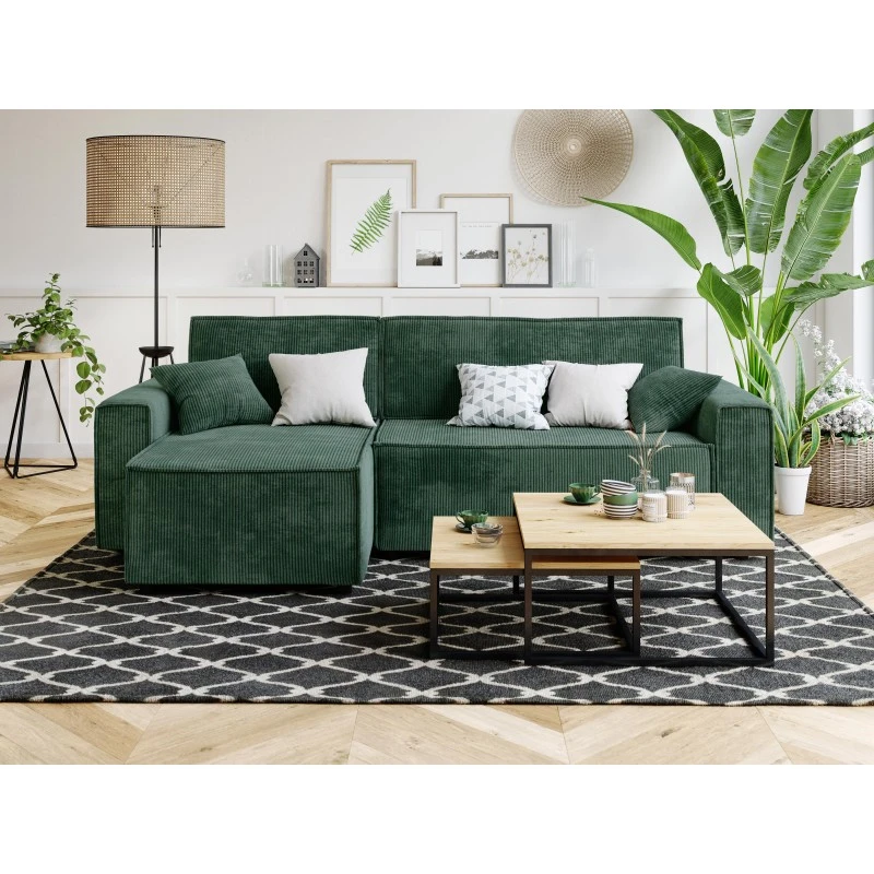 Canapé D’angle MIRA Convertible Et Réversible Velours Côtelé Vert