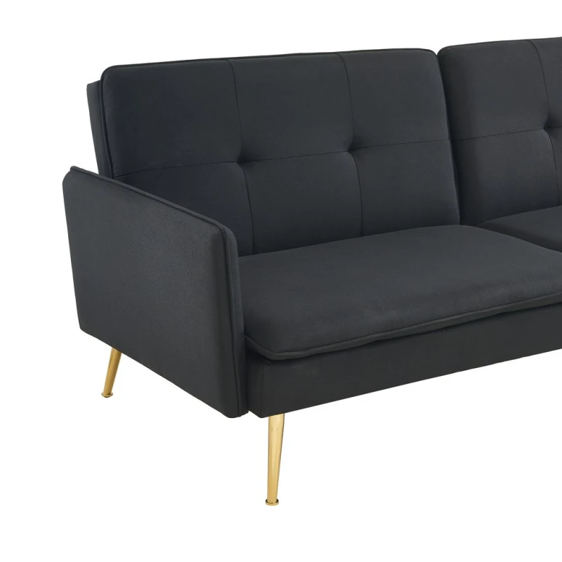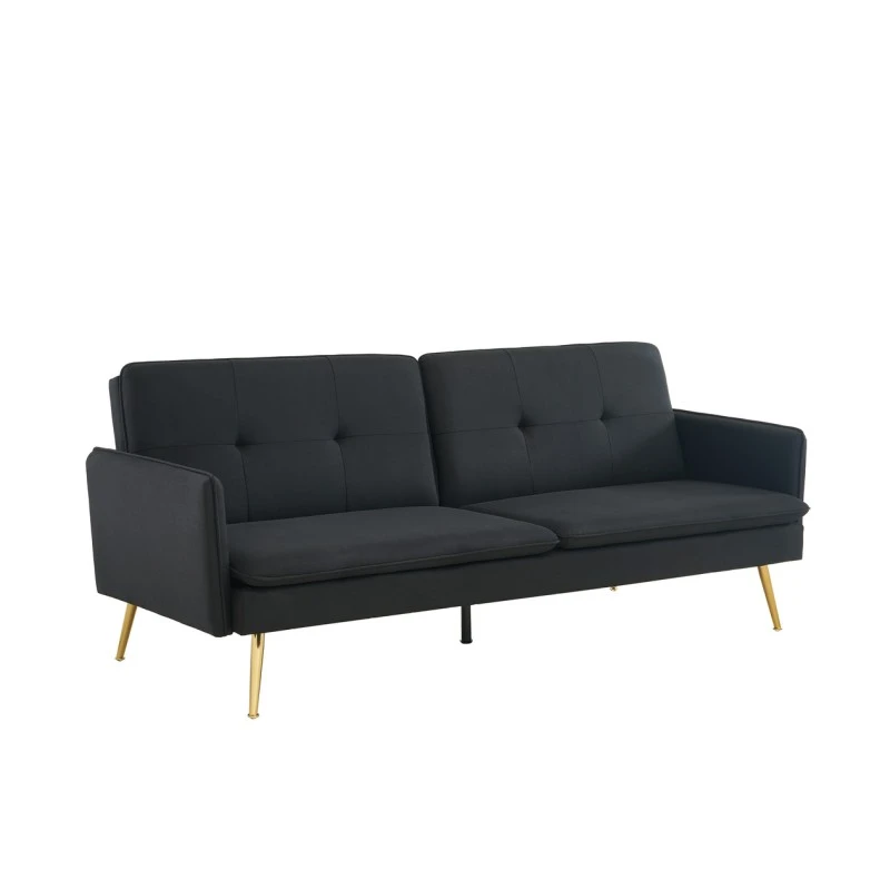 Avec son revêtement en tissu noir le canapé 3 places ADAM a tout pour plaire ! Son piètement très en vogue en métal doré apportera une touche d’élégance à votre intérieur. N’hésitez plus et laissez-vous séduire par l’association du tissu et du métal qui créeront une ambiance vintage. Son petit plus ? Sa fonction convertible pour accueillir vos invités de dernière minute.