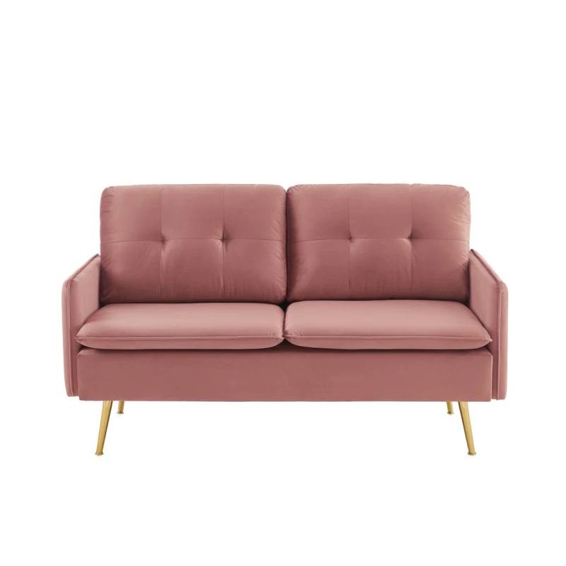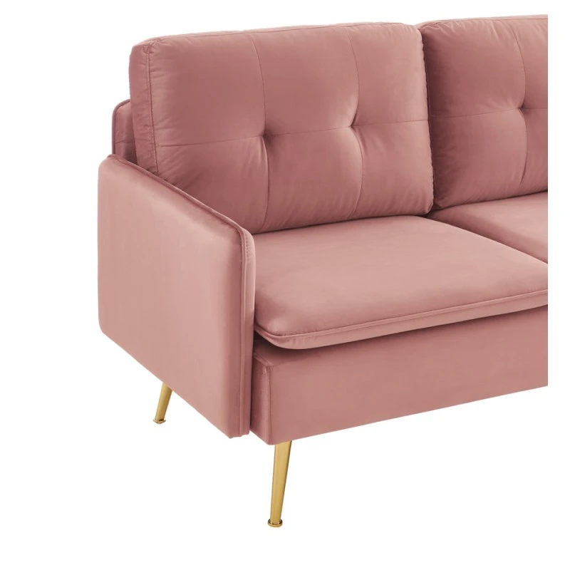 Avec son revêtement en velours rose poudré le canapé 2 places ADAM a tout pour plaire ! Son piètement très en vogue en métal doré apportera une touche d’élégance à votre intérieur. N’hésitez plus et laissez-vous séduire par l’association du velours et du métal qui créeront une ambiance vintage.