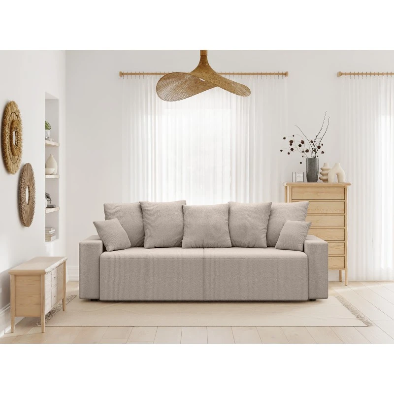 Avec ses lignes droites et épurées et ses larges accoudoirs, ce canapé tendance s’inscrira à merveille dans votre séjour. Son jeté de coussins invite à la détente et offre un confort de grande qualité.