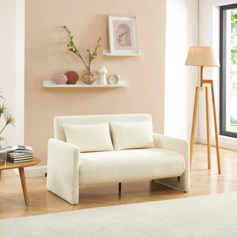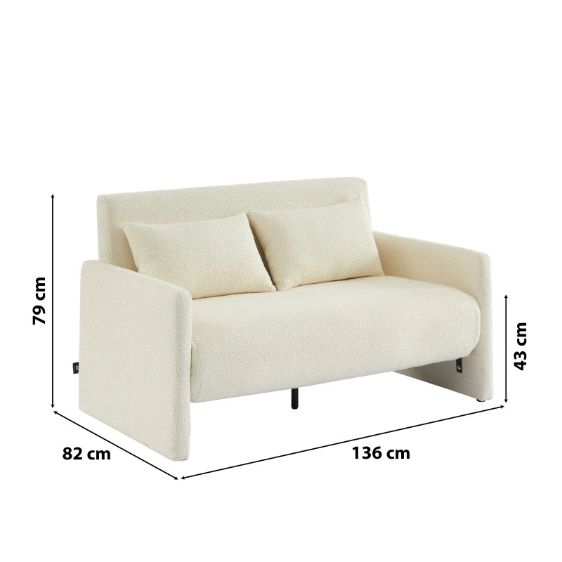 Disponible en 4 coloris, appréciez la douceur de son revêtement en tissu bouclette qui donnera une touche vintage et raffinée à votre salon. Profitez de sa fonction convertible, offrant un couchage 120 x 200 cm, parfait pour vos moments de détentes.