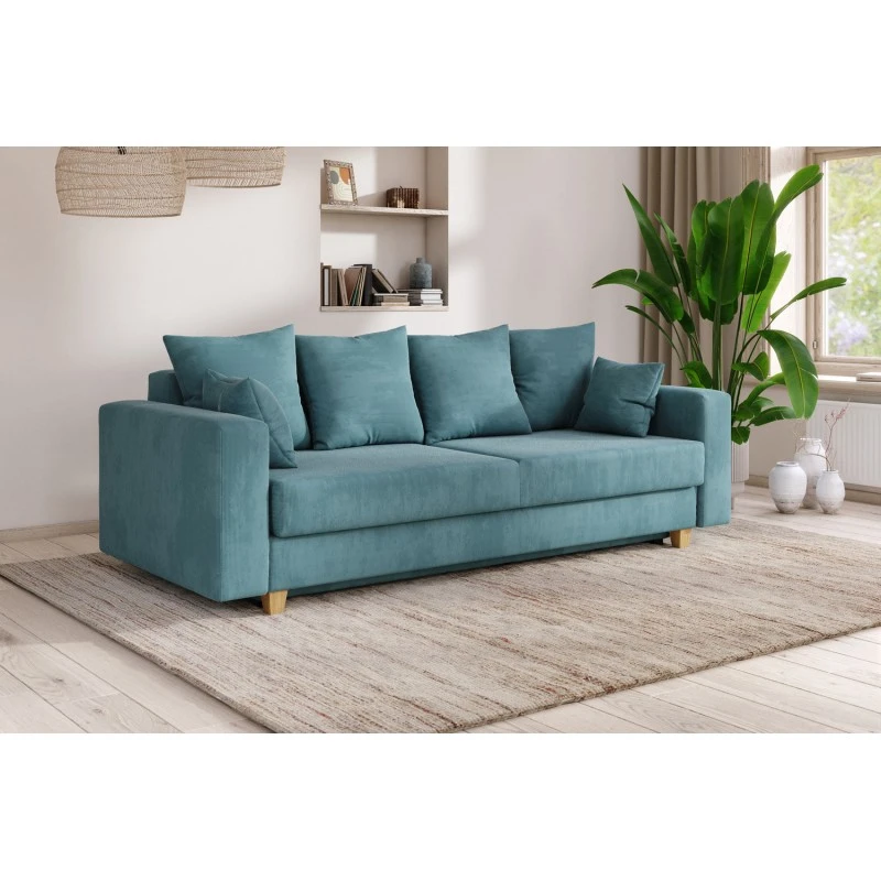 Pratique, le canapé KRISTI possède une fonction convertible pour un couchage de 150 x 190 cm. Sous l’assise, vous trouverez un coffre de rangement, le secret d’un intérieur bien rangé.
