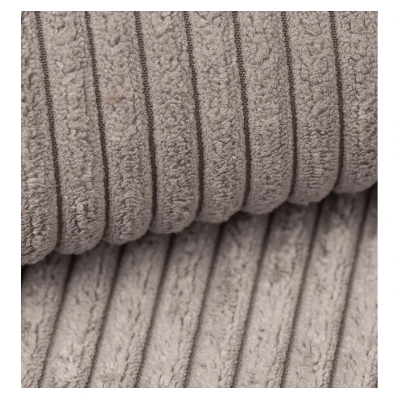 Son revêtement en velours côtelé, ses accoudoirs carrés et son format généreux sont ses vrais atouts tendance.
