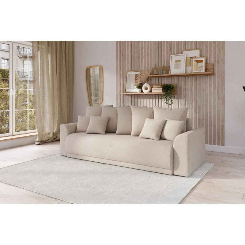 Canapé Droit NOVA Convertible Tissu Beige 3 Places