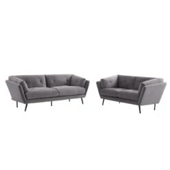 Lot De Canapés THELMA En Velours Vieux Rose Fixe