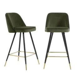 Lot De 2 Tabourets EUGENE En Velours Kaki Avec Pieds Noir Et Doré