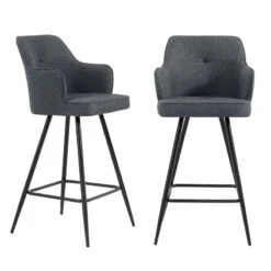 Lot De 2 Tabourets GUSTAVE En Tissu Gris Avec Pieds Noir