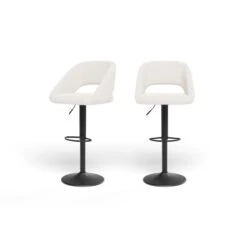 Lot De 2 Tabourets De Bar KYLE Tissu Bouclette Blanc Piètement Métal Noir