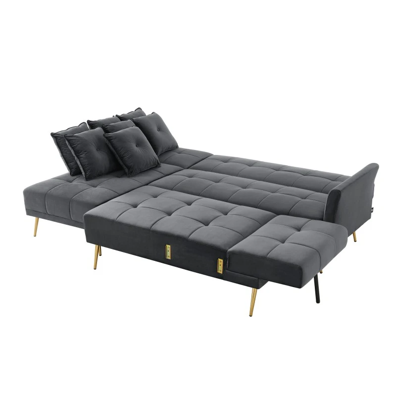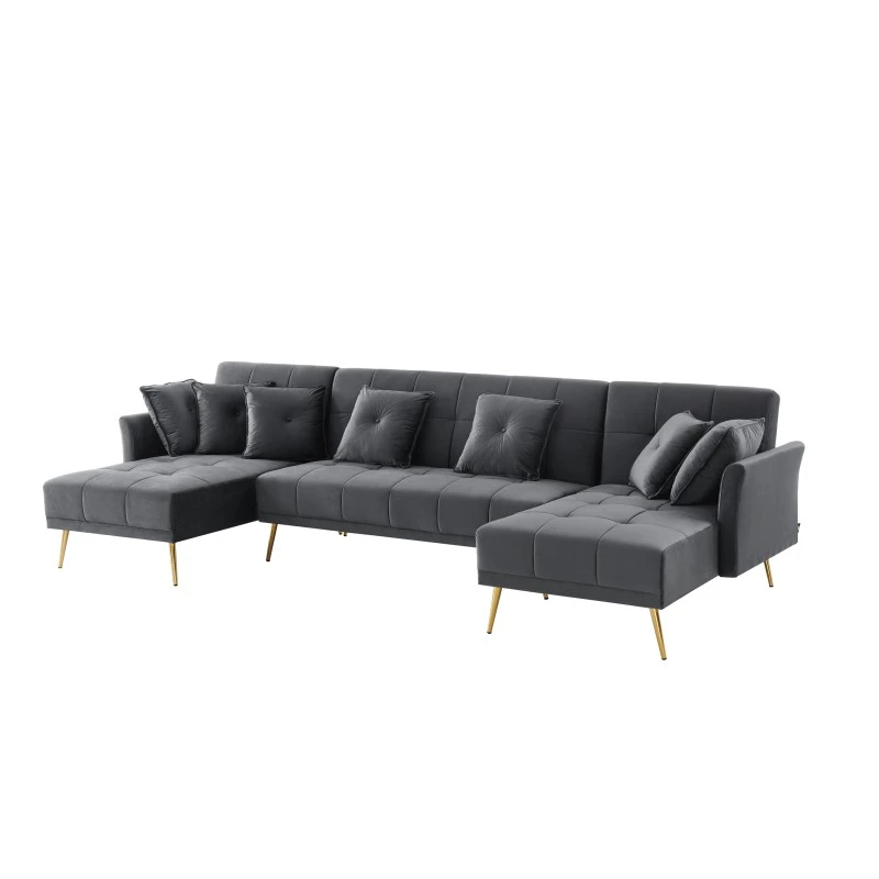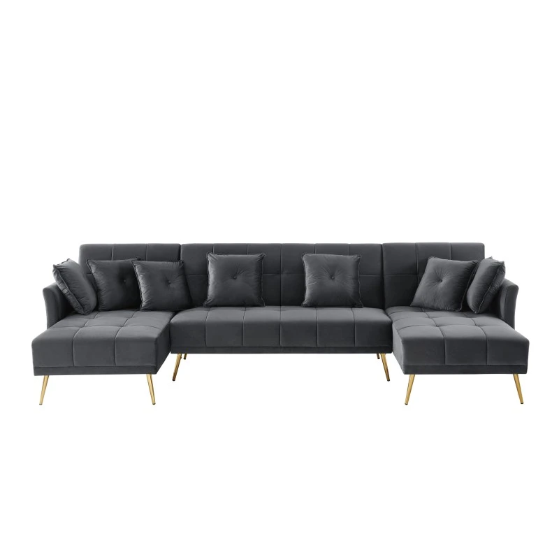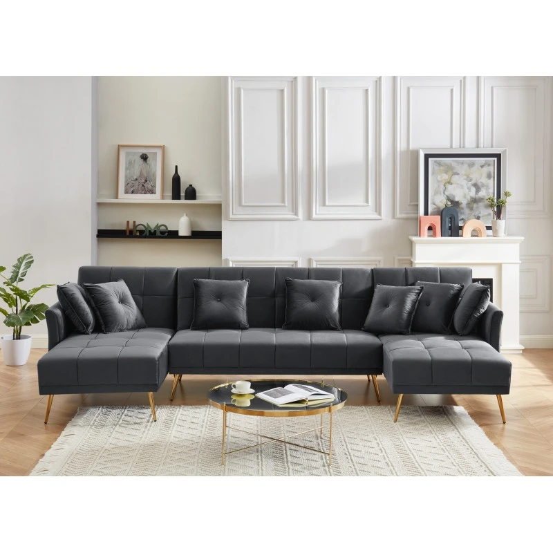 Canapé Panoramique AROMA Convertible En Velours Anthracite 6 Places