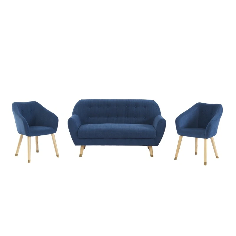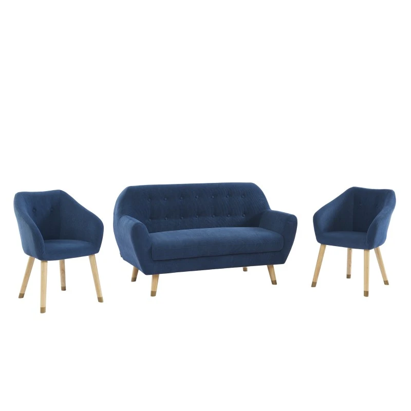 Composé d’un canapé 2 places et de deux fauteuils, cet ensemble vous permettra d’organiser un salon idéal pour recevoir vos amis ou votre famille. Avec son style scandinave, il viendra rafraîchir et colorer votre intérieur.
