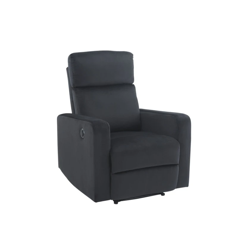 Fauteuil Relax LOVA Large En Velours Noir Avec Fonction électrique