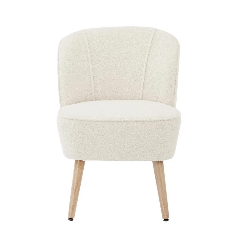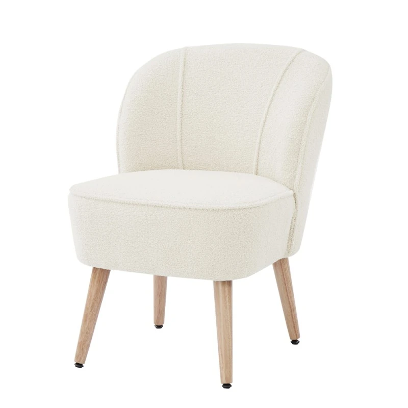 Enveloppez-vous de douceur grâce au fauteuil TIVOLI. Ses pieds obliques en bois sont parfaitement dans la tendance, tout comme son revêtement en tissu bouclette qui promet un confort tout en délicatesse. Son assise rembourrée et son dossier enveloppant épousent parfaitement à la silhouette pour un confort d’assise de qualité.