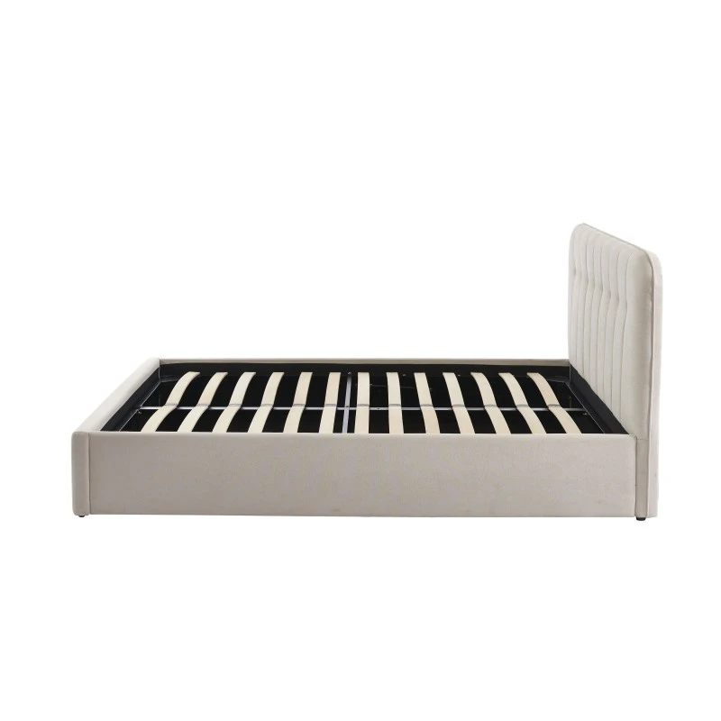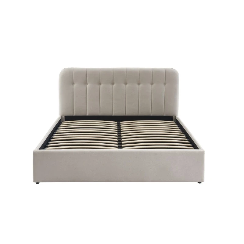 Lit Coffre ANDRE Velours Beige Sable 160×200 Sommier Inclus