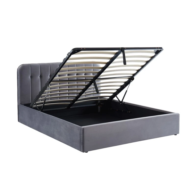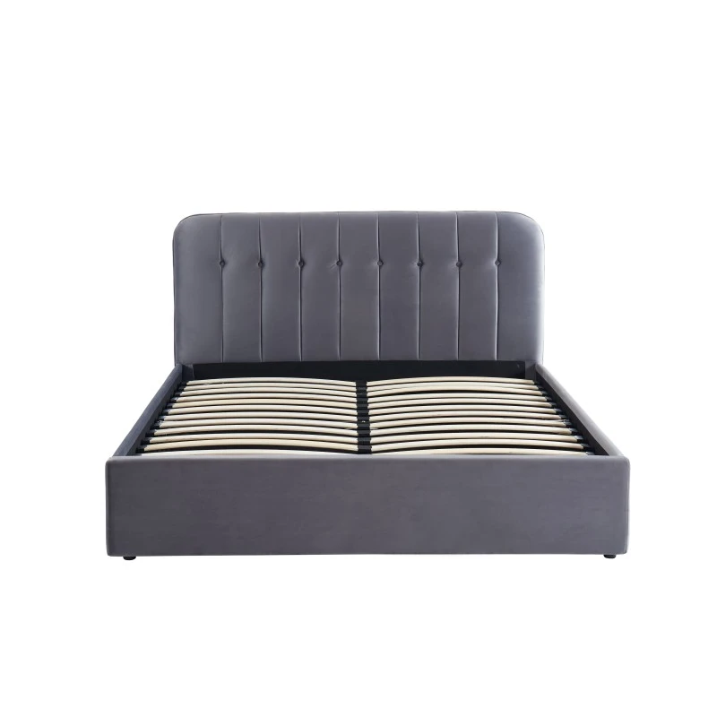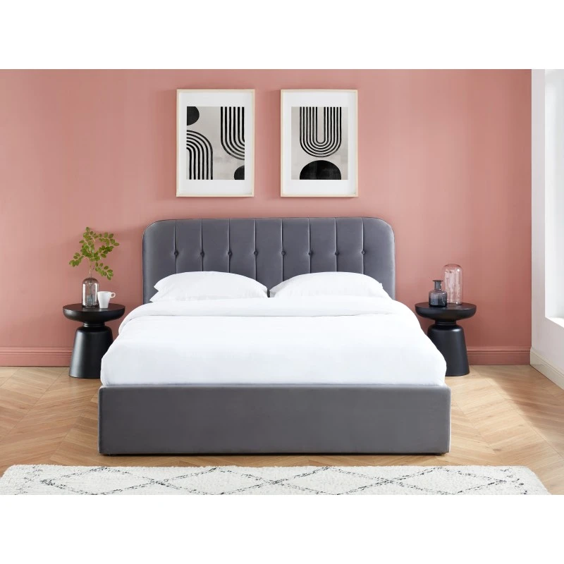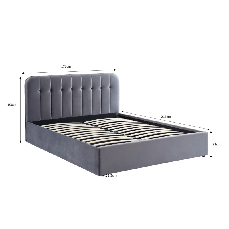 Alliez esthétisme et praticité avec le lit ANDRÉ. Ne vous souciez plus de savoir où ranger vos draps et couette, le coffre de rangement sous le sommier résoudra tous vos problèmes de rangement. Aussi, avec sa jolie tête capitonnée en velours gris anthracite, vous allez vous sentir confortablement installé dans ce lit douillet.