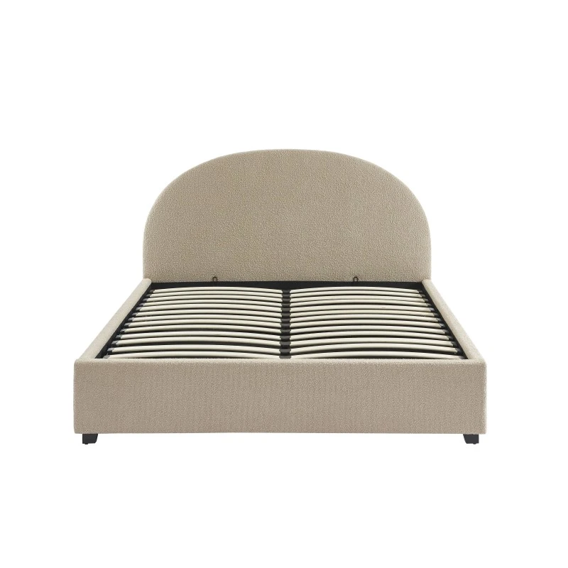 Laissez-vous tenter par ce magnifique lit coffre OLAF ! Avec sa tête de lit et son cadre en tissu bouclette, ce dernier ajoutera une vraie touche tendance à votre chambre à coucher. Son coloris beige, à la fois doux et simple, ira avec n’importe quel style de décoration et de meubles.