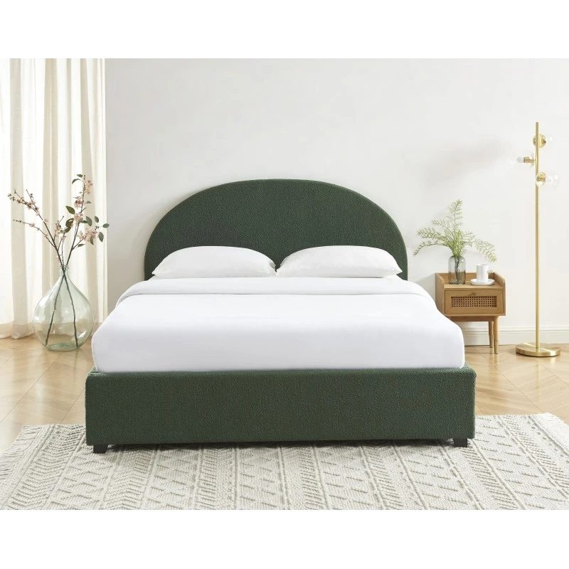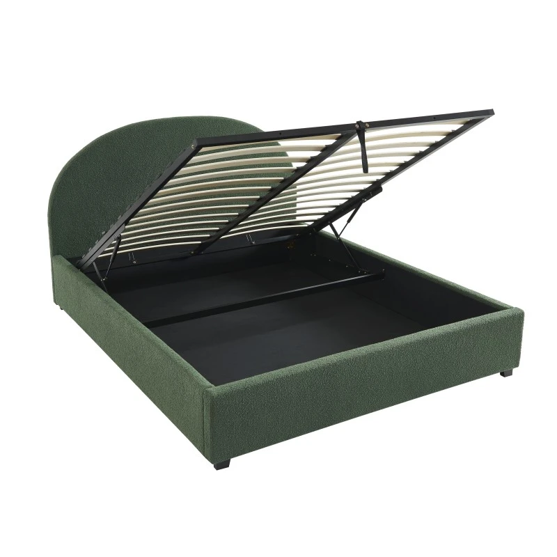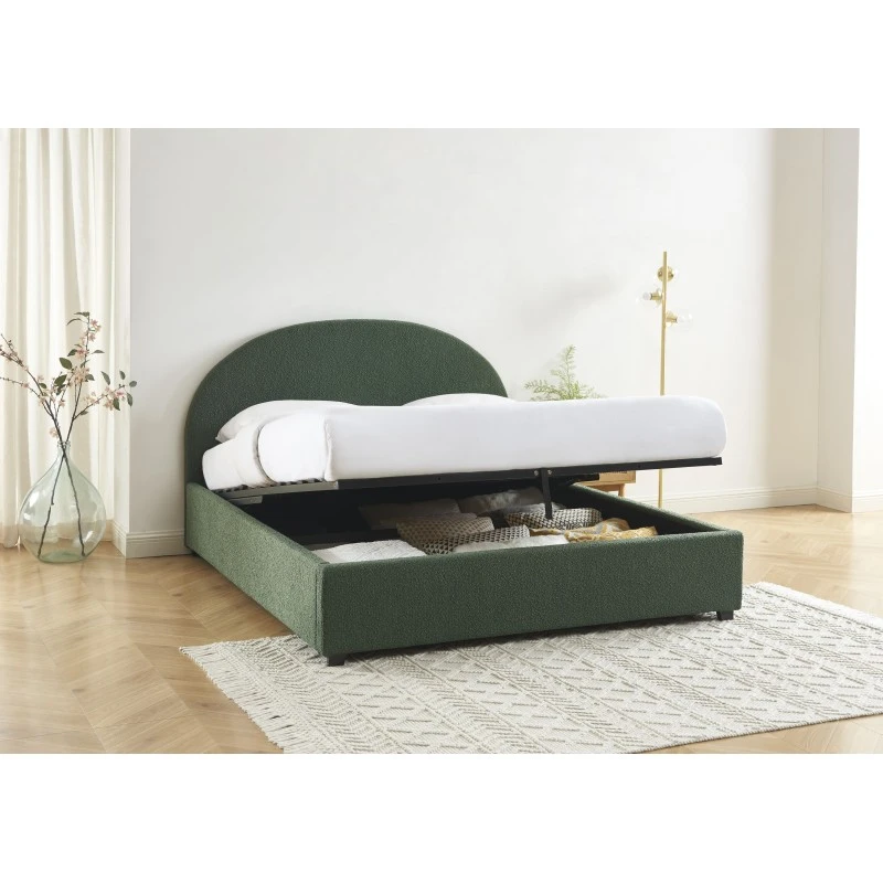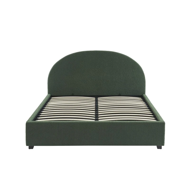 Lit Coffre OLAF Tissu Bouclette Vert Forêt 160×200 Sommier Inclus