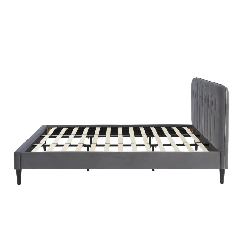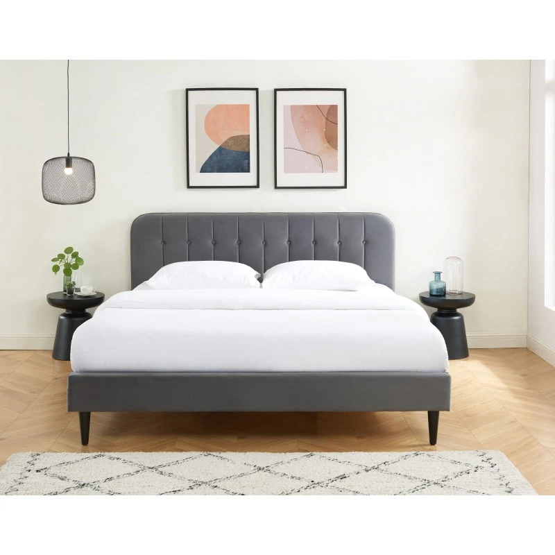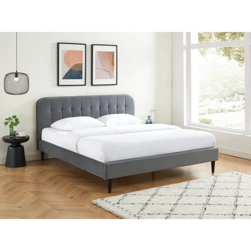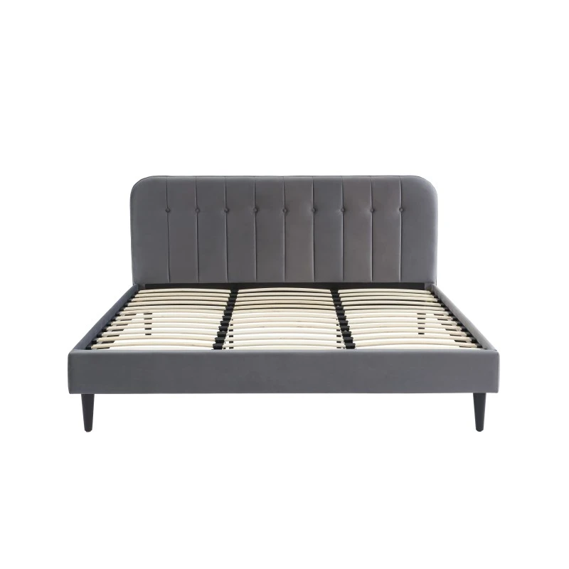 Vous êtes à la recherche d’un lit pour votre chambre à coucher ? Optez pour ce lit double ANDRÉ ! Avec sa tête de lit en velours gris anthracite capitonnée, ce lit apportera une vraie touche d’originalité à votre pièce. Ses atouts ? Un sommier à lattes 180x200cm inclus et des pieds en bois massif pour plus de solidité et de stabilité.