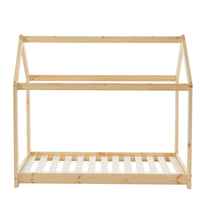 Lit enfant cabane TINY 70x140cm naturel – Structure en bois massif – Sommier à lattes inclus – Dimensions : L146 x P79 x H126cm