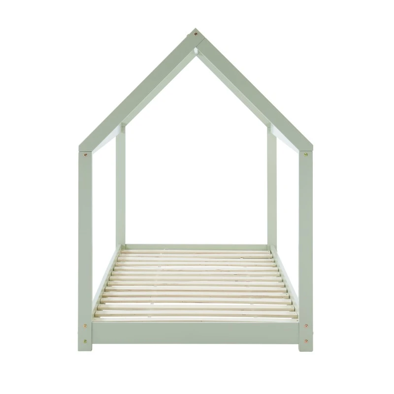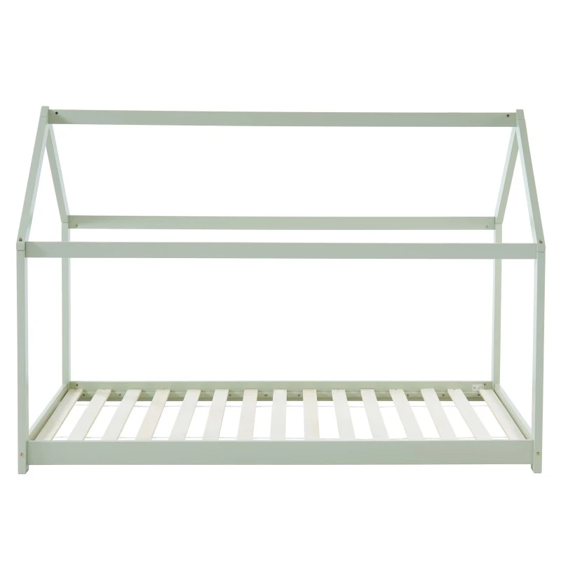 Lit enfant cabane TINY 90x190cm vert – Structure en bois massif de pin – Sommier inclus – Dimensions : L196xP99xH136cm