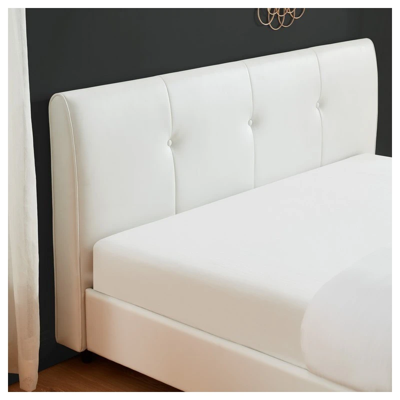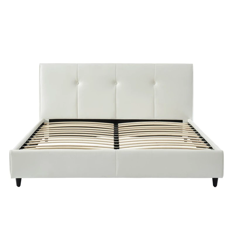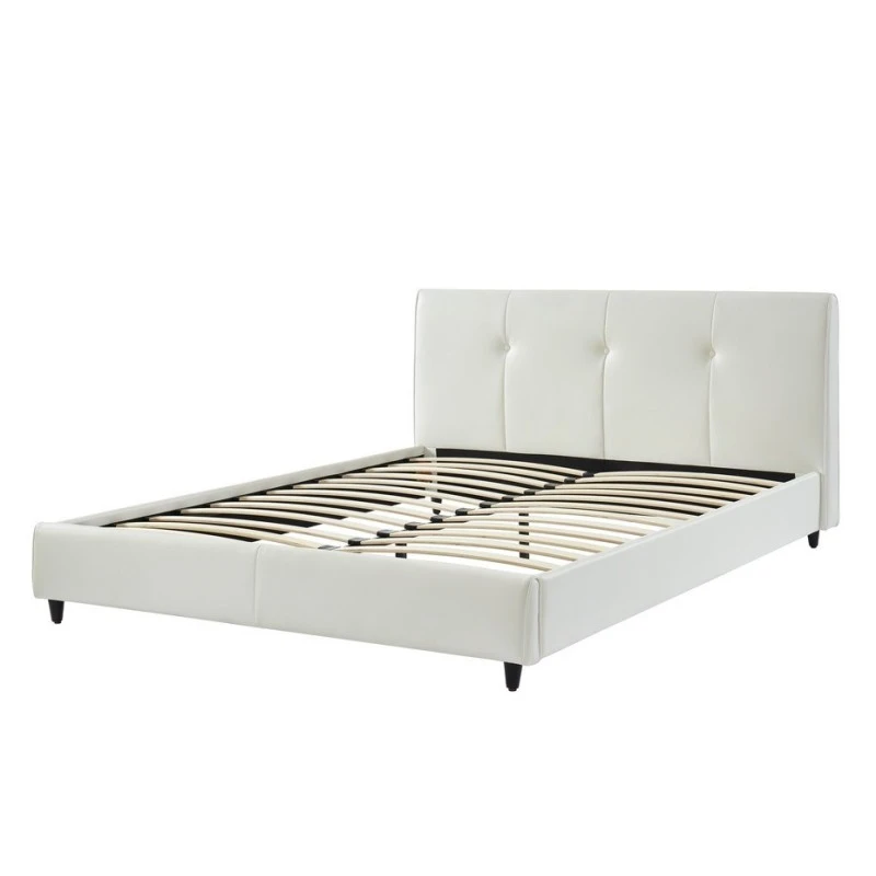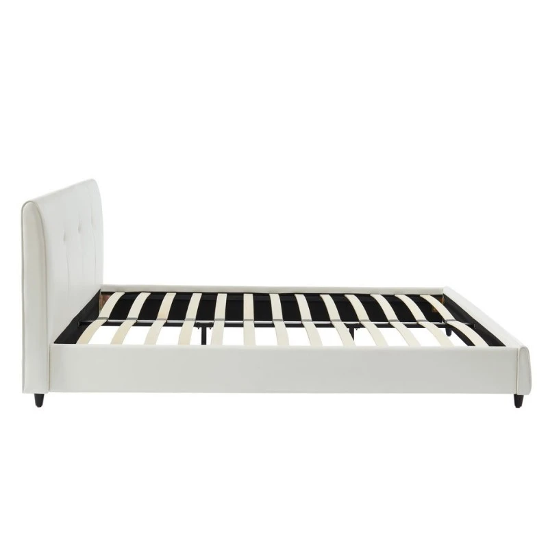 Ses formes généreuses et sa tête de lit rembourrée et capitonnée vous offriront tout le confort nécessaire. On aime également son revêtement en simili qui s’adaptera sans effort à votre chambre. Pour finir, son sommier à lattes est inclus !