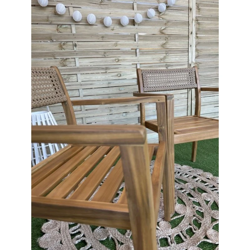 On aime le mélange bois d’acacia et résine tressée (style cannage) de nos fauteuils de jardin NORA assortis à notre table PERLA ! Le détail en résine tressée, « style cannage », des fauteuils apportera une touche tendance à votre extérieur !