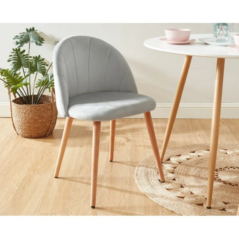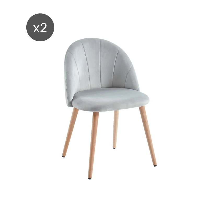 Craquez pour ce style original que vous offre ce lot de 2 chaises SHELL ! Avec son dossier au design coquillage, ces dernières seront les pièces phares de votre salon / salle à manger. Son dossier et son assise vêtus de velours gris clair vous offriront un grand confort et ajouterons une touche déco avec votre intérieur. On aime également ses pieds en hêtre massif, leur donnant plus de solidité, mais aussi une finition plus travaillée.