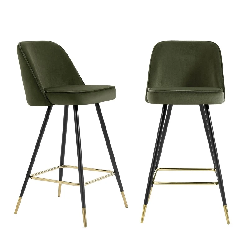 Laissez-vous séduire par le tabouret EUGENE ! Grâce à son assise et son repose-pied, vous serez confortablement installé, pour manger, télétravailler ou discuter avec vos amis autour d’un café. Sa hauteur d’assise de 72 cm s’adaptera parfaitement à votre cuisine ou votre salon. Son revêtement en velours apportera un côté luxueux et chaleureux à votre intérieur.