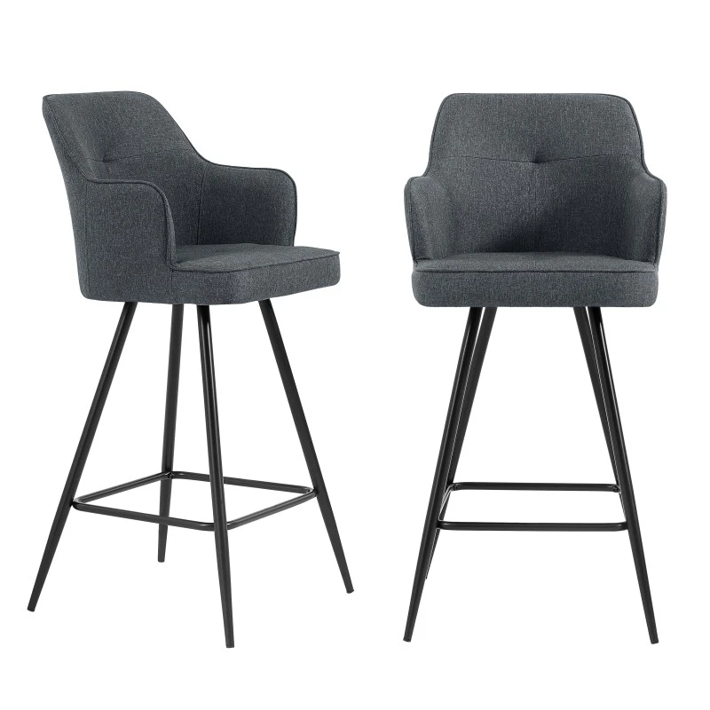 Craquez pour le lot de 2 tabourets de bar GUSTAVE en tissu gris !