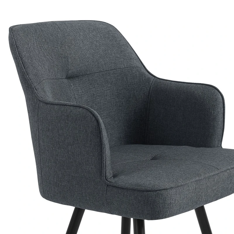 Sa hauteur d’assise de 73 cm s’adaptera parfaitement à votre cuisine ou votre salon. Son design épuré avec ses pieds en métal noir et ses accoudoirs apportera un côté luxueux à votre intérieur.