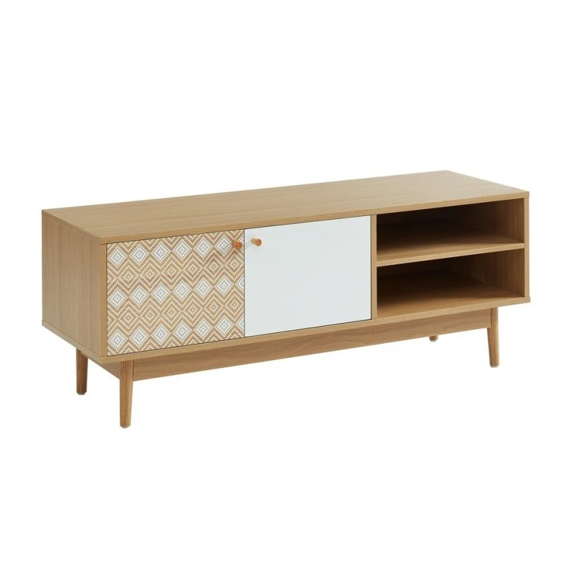 Meuble Tv LEIKA Blanc Et Effet Chêne 2 Portes 120cm