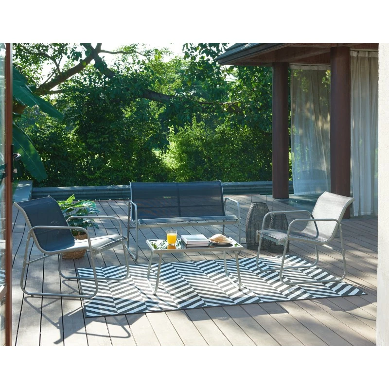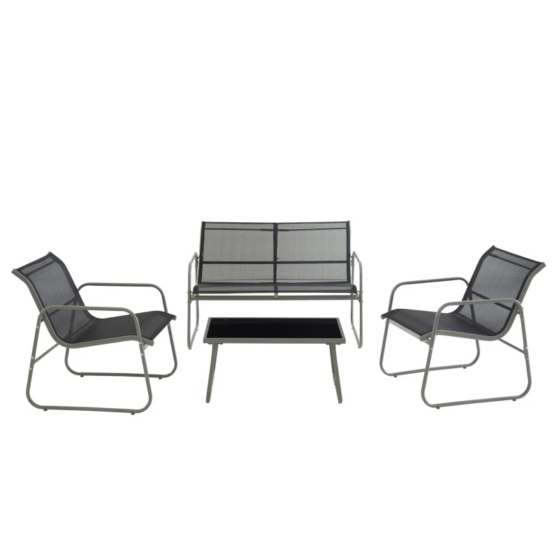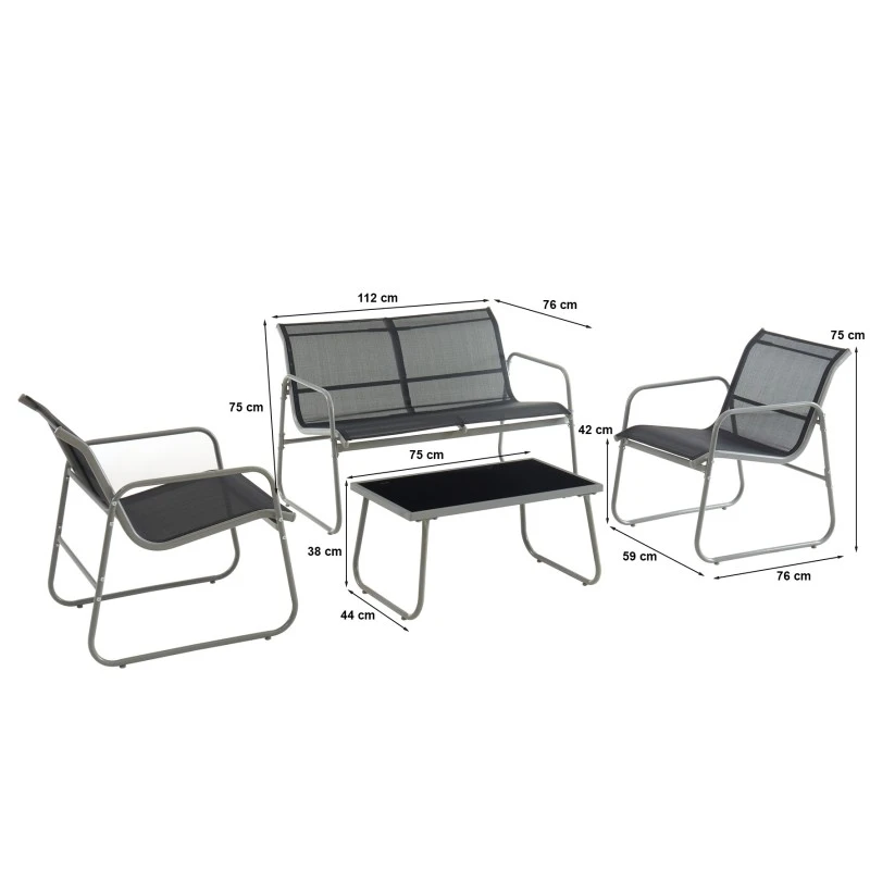 Salon De Jardin LISBOA En Acier Et Textilène Noir 4 Places
