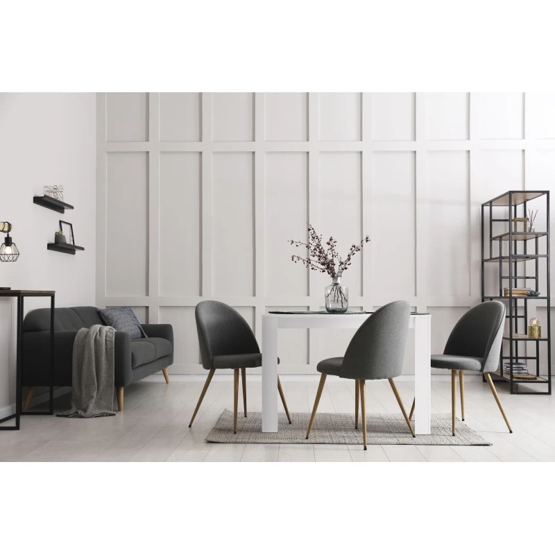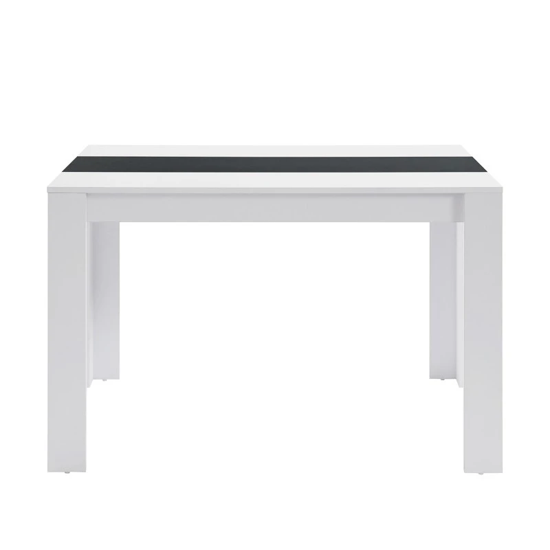Table à manger DAMIA de 4 à 6 personnes – Structure en panneaux de particules – Revêtement en mélaminé coloris blanc et noir – Style et design contemporain – Dimensions : L120 x P80 x H75 cm.