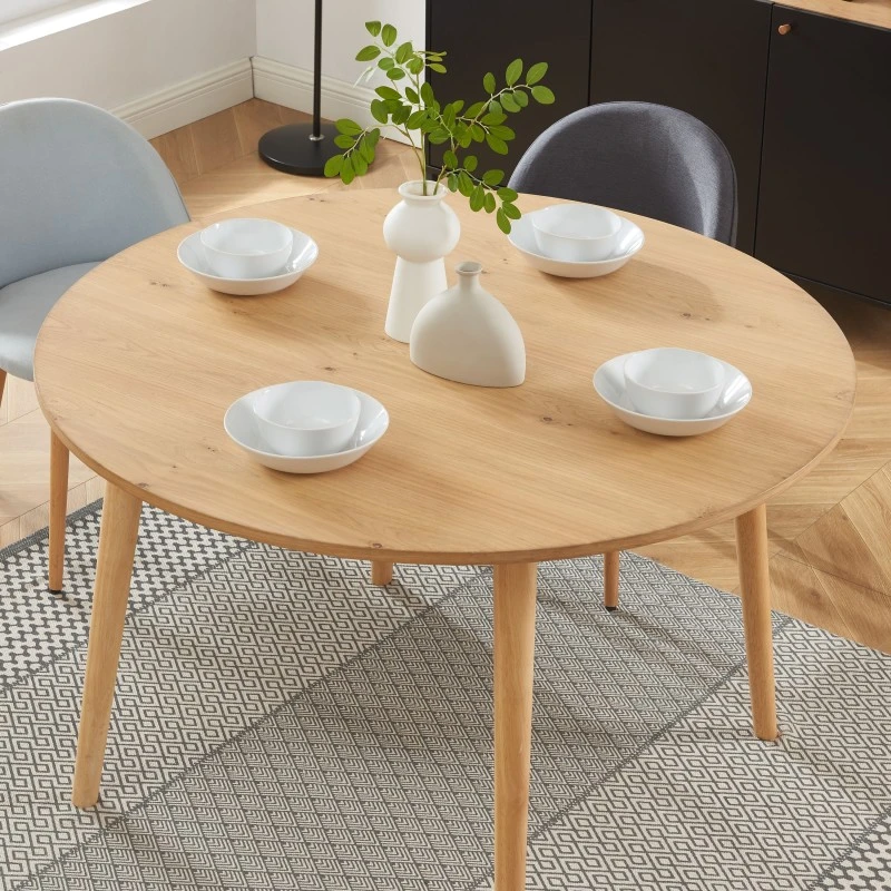 Design, épurée et scandinave, succombez pour cette table à manger ronde et conviviale ! En plus de pouvoir aller avec tous les styles de décoration et d’ambiance, cette table à manger vous permettra d’accueillir jusqu’à 6 personnes à table, dans une ambiance décontractée et chaleureuse.