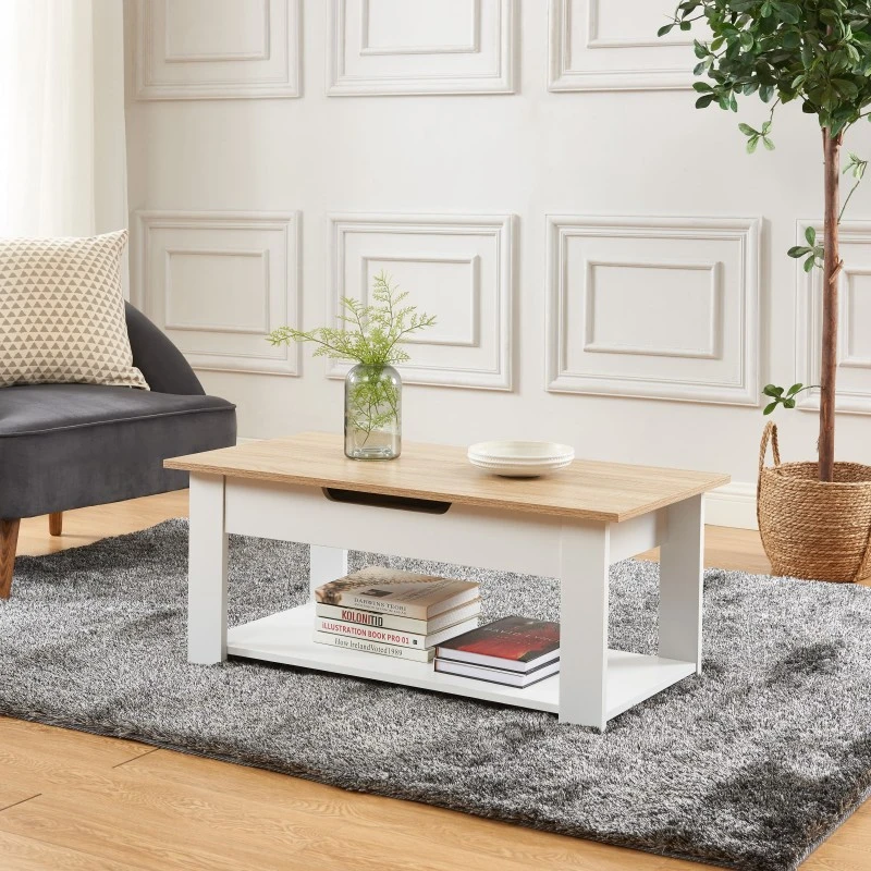 Table Basse JULIETTE Blanc Et Effet Chêne 1 Tiroir