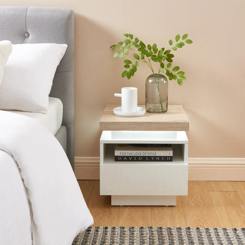 Le plus de cette table de chevet ? COSMOS possède une ceinture LED blanche, s’illuminant au gré de vos envies ! Que ce soit pour donner à votre chambre une certaine atmosphère, ou pour lire votre livre du moment, activez la LED en quelques secondes !