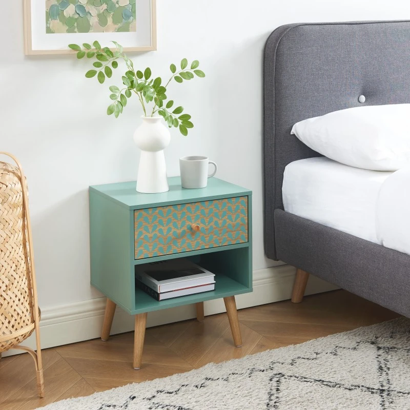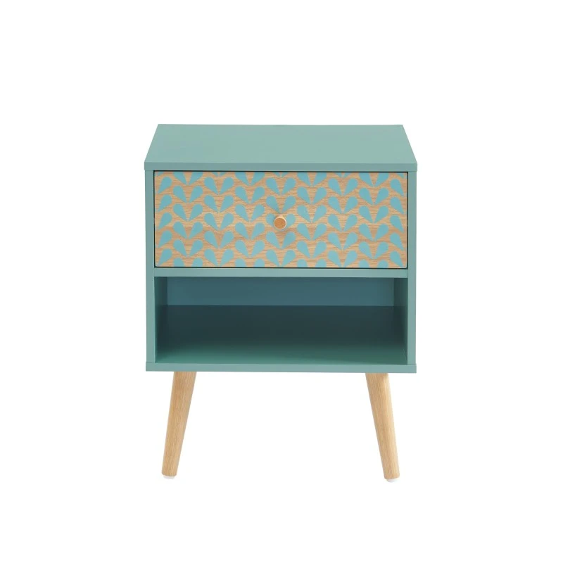 Ajoutez une touche d’originalité à votre chambre à coucher grâce à cette magnifique table de chevet CAPUCINE. D’un style rétro avec ses motifs délicats, mais aussi scandinave grâce à ses pieds évasés en bois massif, vous allez totalement craquer.