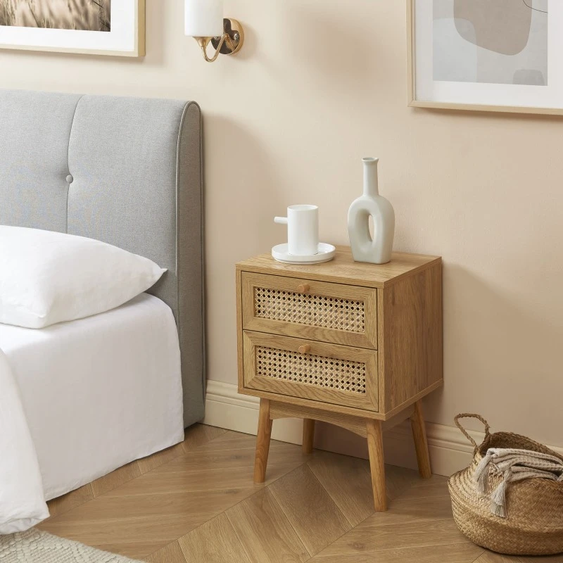 INÈS est un must-have pour une pièce au style rétro. Avec ses 2 tiroirs en cannage rotin circulaire, cette table de chevet ira à merveille dans votre chambre, lui apportant la touche vintage que vous aimez tant !