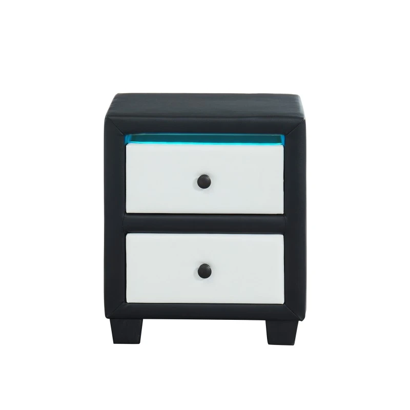 Adoptez la table de chevet SOLAR à LED noir et blanc assortie au lit SOLAR à LED pour illuminer votre chambre.